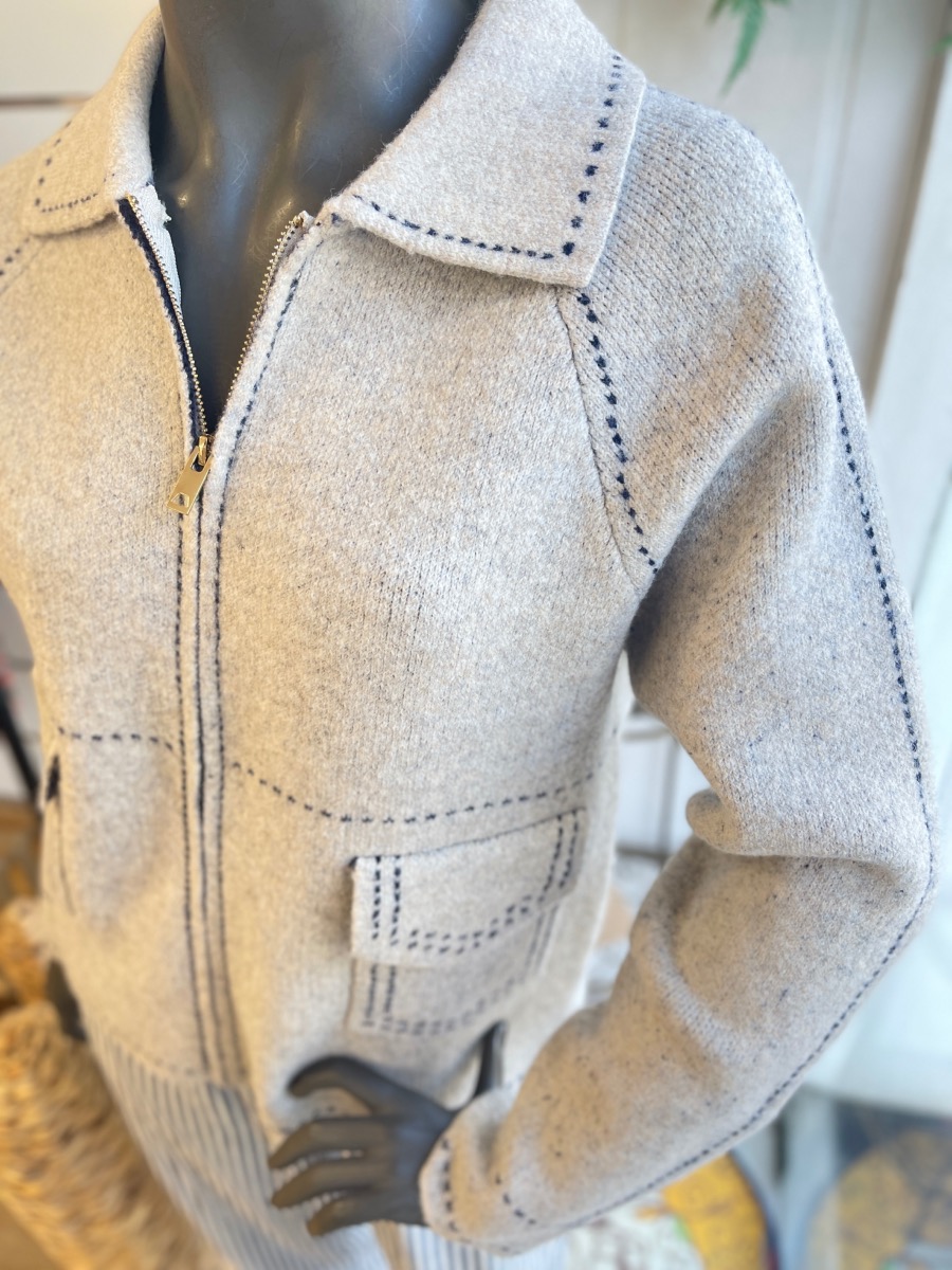 On craque pour son col polo structuré, sa fermeture zippée pratique et ses surpiqûres fantaisies contrastées qui soulignent joliment la coupe.