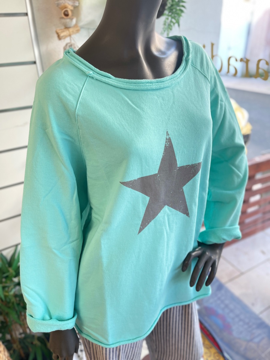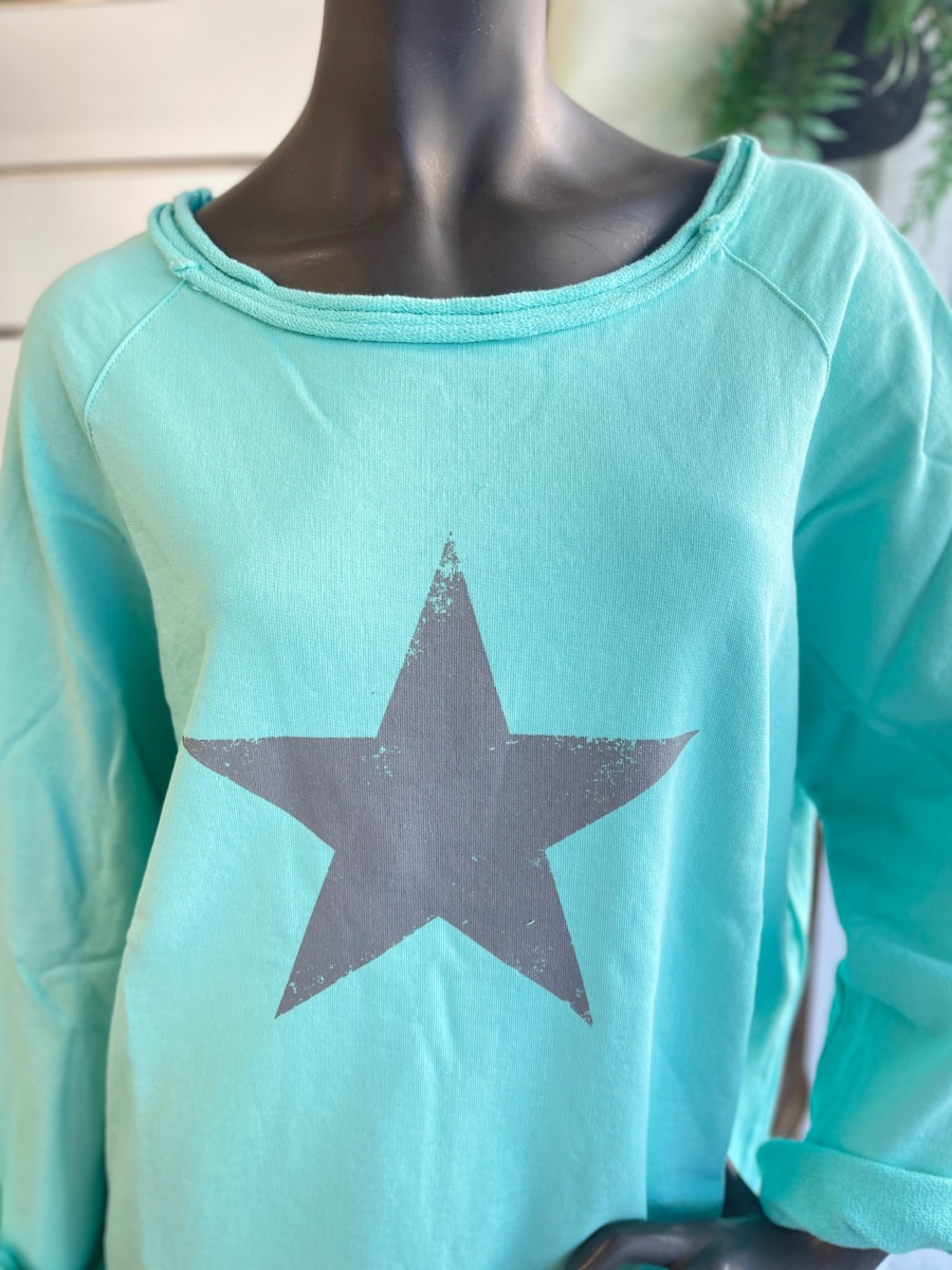 Sur le devant, une étoile grise imprimée contraste élégamment avec le coloris turquoise et apporte une note moderne et intemporelle.